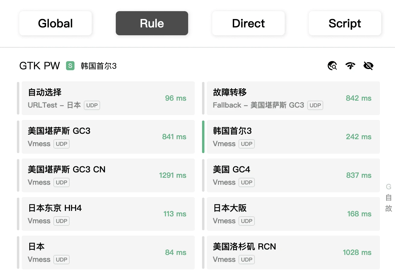 11.然后点击窗口左侧的 > Proxies (代理),选择需要使用的节点。